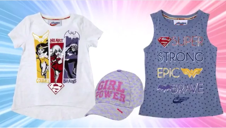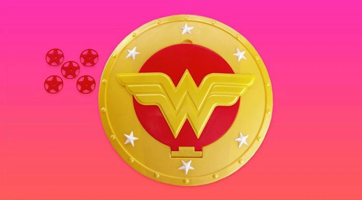 Lo scudo di Wonder Woman è uno scudo che può essere caricato di "proiettili" per poi essere lanciati tramite un bottone nell'impugnatura. I vestiti sono magliette e cappelli con su aggettivi e personaggi della serie.