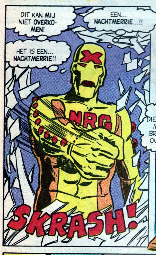 N.R.G.-X is Grant Haskill, een wetenschapper wiens bewustzijn door een corrupte zakenpartner werd overgeplaatst in een robotlichaam.