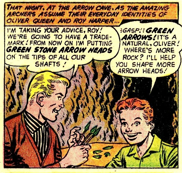 A Flechacaverna é comum à continuidade das versões da Terra-Dois do Arqueiro Verde e o Ricardito, bem como suas contrapartes da Terra-Um/Pós-Crise. O conceito da Flechacaverna foi baseado em projetos (originalmente) imaginados pelo Batman e o Robin.