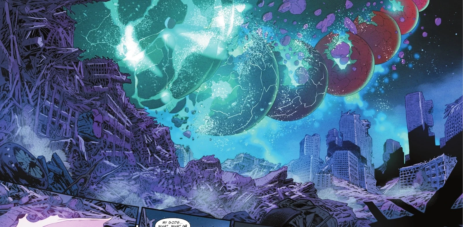 No início, havia muitos, uma única infinitude multiversal... tão fria e escura por tanto tempo... que mesmo a luz ardente era imperceptível. No entanto, o lume cresceu, o Multiverso sobressaltou-se... e as trevas finalmente gritaram de dor e alívio. Pois, naquele instante, nascia um Universo. Um Universo de poderosos mundos orbitando sóis ardentes. Um Universo renascido na Aurora do Tempo. O que havia sido muitos tornou-se um.[11]