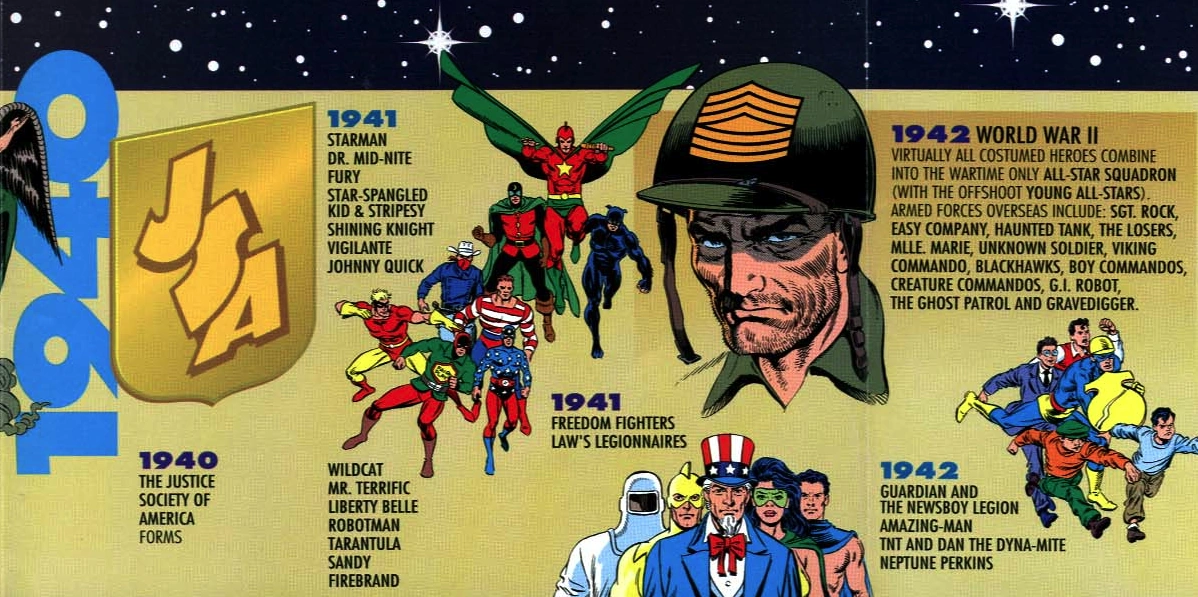 A Liga da Justiça da América é renovada na sequência de Superman, Batman, e o regresso da Mulher Maravilha para a ação. Em sua insistência, Lanterna Verde Alan Scott, Flash Jay Garrick, e Pantera Ted Grant reformam a Sociedade da Justiça da América, em uma tentativa de estabelecer um exemplo para a crescente população meta humana.
