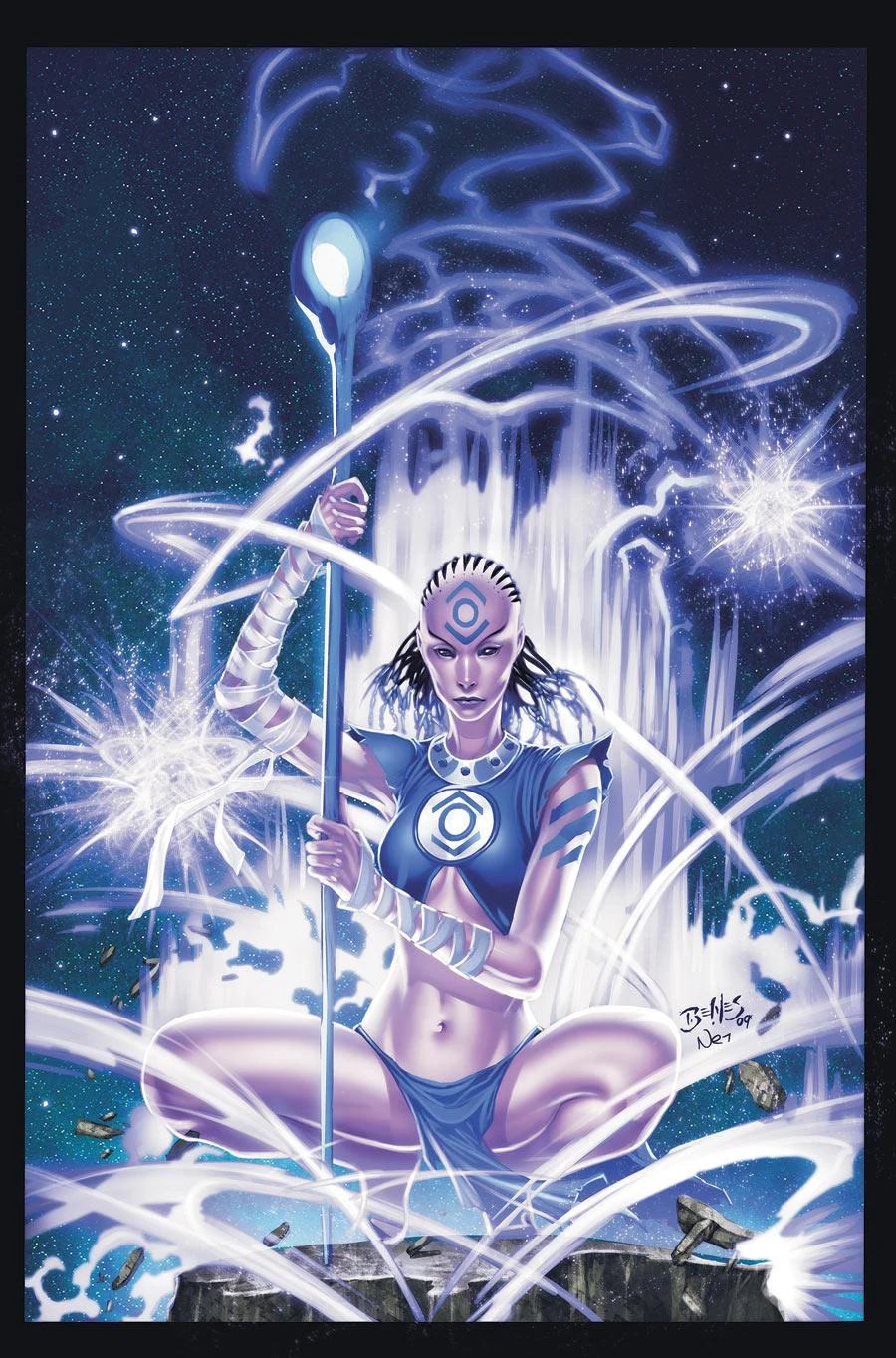 Índigo-1 afirmou que ela pode teletransportar os exércitos de cada Tropa de Lanternas para a Terra, se tiver tempo para meditar, então a responsabilidade cai para Ray para protegê-la enquanto ela faz isso. Antes de ela entrar em transe, ela revelou a Ray que o pessoal índigo e sua compaixão esmagadora lhe permitem imitar os outros poderes do Tropa de Lanternas; ela demonstra isso tornando-se temporariamente uma Lanterna Vermelha e vomitando sangue corrosivo por toda uma empresa atacante de Lanternas Negras. Ela então entra em seu transe, enquanto Ray luta contra os Lanternas Negros Gavião Negro e Moça-Gavião temporariamente se tornando um Lanterna Laranja, proclamando em voz alta "Eu quero meus amigos de volta!" Ele então invoca duas duplicatas de energia laranja de Khufu e Chay-Ara para ajudá-lo a lutar contra seus atacantes e o Índigo-1. Ele é brevemente bem sucedido, mas, em seguida, Jean aparece para atormentá-lo e saltou para o anel de Índigo-1. Ray a seguiu e acabou revivendo a morte de Sue Dibny, sendo então atacado por vários Lanternas Negros Morlaidhanos, a minúscula raça que ele fez amizade durante seu tempo na floresta amazônica anos antes. Ele lutou contra eles e - convocando os poderes de um Lanterna Verde - destrói Jean. Índigo-1 conseguiu convocar os vários exércitos e agradecer a Ray por sua ajuda. Ele disse a ela para manter seu envolvimento no desdobramento das tropas em segredo, e pediu que ela o ajudasse a encontrar uma maneira de ressuscitar legitimamente Gavião Negro e Moça-Gavião.[174]
