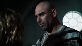 After being manipulated by another inmate, Barbara Kean, into protecting her from others, Helzinger, Kean and several other inmates were kidnapped from the Asylum by Tabitha Galavan under the orders of Theo Galavan.[1] Several of the murderous inmates, including Helzinger, began calling themselves "the Maniax," and took part in a murder spree meant to cause mass panic in Gotham City, per Theo Galavan's orders. As part of the murder spree, Barbara Kean lured James Gordon away from the Gotham City Police Department building so that several of the other Maniax could murder a large number of policemen in the building, including Commissioner Sarah Essen. Unaware of what was taking place, Gordon attempted to arrest Kean but, as a result, was beaten by Helzinger. After Kean and Helzinger fled the scene, Gordon returned to the GCPD to discover the massacre that had taken place.[2] Helzinger went missing shortly after, and despite the search efforts of Gordon and Detective Harvey Bullock, he escaped.[3]