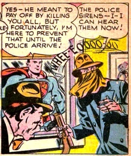 The Ace might have continued to enjoy a prosperous career in smuggling, until the day came that Superman…in his guise as investigative journalist Clark Kent…learned of a secret rendezvous that the Ace had arranged with his clients to plan their next smuggling operation by eavesdropping on the gang. Kent was prepared to give the information to the authorities, until he was caught by the gang and had to flee for fear that they would try to kill him…and that when they failed, it would reveal his secret identity. Realizing that if he did not act quickly, the Ace would simply change the time and place of the meeting and thus stymie the police, Kent contrived an elaborate ruse in which he faked his own death at the hands of his alter ego, Superman…thus ensuring that Superman would be charged with murder and go on trial. The underlying theory behind this was that the Ace, operating under the assumption that Kent was dead and that Superman was otherwise occupied, would allow his meeting to proceed with no changes, and that this would allow Superman and the police to move in and trap the entire gang. The ruse succeeded, and the Ace was arrested, tried and convicted of smuggling and racketeering and given a long prison sentence.