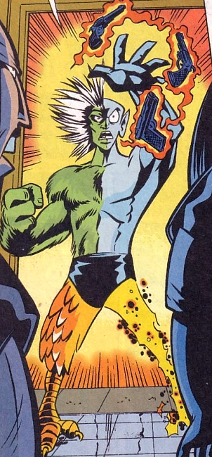 During a routine patrol, Lawman Arn was transported to the lab of the criminal scientist Zobra by a weird disc. Zobra was dead, and his henchmen blasted Arn with an experimental ray, which turned the victim into a slave duplicate. However, because all four shot him all at once, each quarter of Arn's body resembled a different alien. This results in a pointed ear on the right, feathers and claws on the left leg, and the right leg made of electricity. Because only a quarter of each ray was effective, he was not mind controlled by any of them, but did gain their superpowers. He decided to name himself after the four aliens' home worlds: Ulla, Laroo, Trago and Raagan, and added an A for Arn: Ultra, the Multi-Alien. He used his powers to fight crime.