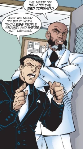 When Fite 'n Maad kidnapped Nina Dowd and was placed in a cocoon, Young Justice arrived freed the now "Mighty Endowed".[1] The duo appeared again when after the boys stopped Tora, they were confronted by Fite 'n Maad about the whereabouts of Secret. When "Mighty Endowed" tried to escape captivity, Fite 'n Maad were the ones to bring her down.[2] They also tried unsuccessfully to keep Red Tornado contained when he attempted to escape the courthouse with his step-daughter Traya Sutton after the judge had declared him an unfit parent.