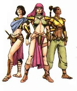 Thus, the Amazons propagated themselves. They became expert weaponsmiths and dealt in arms trade with the world outside. The Bana-Mighdall Amazons became much feared, but their superior weapons were desired, and so an uneasy alliance was made between them and warring groups of men. When the industrial revolution changed the landscape of weaponry in the world outside Bana-Mighdall, the Amazons kept up, learning to manufacture firearms of the highest quality. Into the twenty-first century, most of the developing Arab world knew these Amazon marauders only as a legend. A brave or desperate few would seek out the ruthless mercenaries - for the Amazons of Bana-Mighdall always demanded a devastatingly high price for their services.