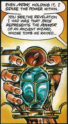 The Amulet of Isis had belonged to Queen Pharaoh Hatshepsut of the 18th Dynasty, another of the Wizard's champions, who had used it to bring peace to her kingdom. Upon Hatshepsut's death, the amulet became dormant.[1] Uncovered by Teth-Adam from the tombs at Abu Simbel, he later gave it to Adrianna Tomaz. With the blessing of Captain Marvel, Adrianna tapped into the amulet's power, transforming into Isis.[2]