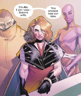 An became a leader in the movement after her husband, Stevn of the Glacier, became the first murder victim in 500 years. His murderer was under the influence of Switchoff, a drug that allows users to feel emotions. Since all citizens of City Enduring are subject to the "Emotion Exploit", a bio-engineered virus that subdues and controls emotions, An believed if people had access to their emotions, they would learn to regulate them and her husband's death would never have occurred.[1]