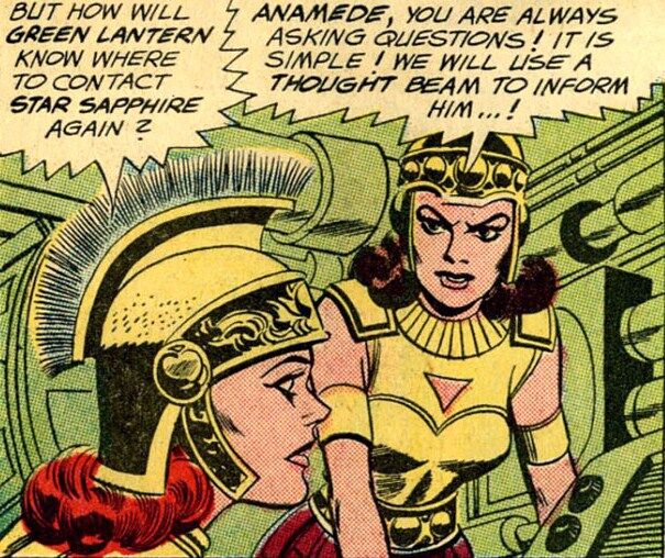At this point, Anamede was on board the Zamaron starship and asked her superior how an encounter would occur. Her superior, however, scolded her for always asking questions and she revealed that they would use a thought beam to transmit that knowledge directly to Green Lantern. He in turn arrived on the scene where he pit his Green Lantern Power Ring against Ferris' Star Sapphire powers. Ultimately, he managed to encase Ferris in an energy construct which prevented directed energy from the Zamarons from empowering her. Defeated, Star Sapphire was teleported away and Jordan was left unaware that the foe he faced was Carol Ferris. The dismayed Zamarons which included Anamede believed that Ferris' defeat was a disgrace on their sex and felt that Carol could never be their Queen. Thus, they decided to return her to Earth after purging her mind of her encounter with the Zamarons and the fight where she was taken back to her homeworld by Green Lantern. However, the Star Sapphire gem was left behind and taken into the custody of the Green Lantern of Sector 2814.