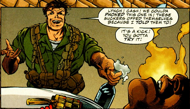 Their boss Miles Craven of I.O. had them exposed to the Gen-Factor during a routine mission.[1] This caused them all to gain special abilities, and several members of the team lost their minds. Johnson went mad with power and began telepathically controlling enemies to shoot themselves in the head, while forcing them to smile. Cole Cash executed him for this inhumanity, and John Lynch was the only witness.[2]