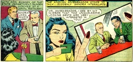 In 1941, prior to the entry of the United States into the ongoing Second World War, the Anglian Ambassador and several high-ranking naval officers were aboard an experimental U.S. Navy dirigible, for a well-publicized test flight, near Washington, D.C. The airship had a secret agent, of an unidentified hostile foreign power, impersonating the commanding officer, and there was a time bomb planted aboard. An American intelligence agent, Don Borden, and his secret ally the Phantom Lady, collaborated to foil this plot. Afterward, the Anglian Ambassador was very effusive in his praise of the Phantom Lady's heroics..