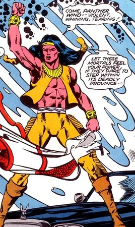 Arak Wind-Walker has the metahuman power to create focused hurricanes and/or tornadoes at will. He refers to this power as "manipulating the Panther winds." It is known that he is descended from the legendary hero Arak: Son of Thunder, but the precise details regarding his lineage have not yet been revealed.