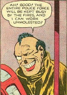Baron Hoff set fires in multiple buildings across the waterfront of Manhattan until the entire borough was ringed with flames as a distraction to rob a large bank. When a bank teller attempted to reach for a gun he was gunned down by Baron Hoff. Quicksilver stopped the fires and saw the hold-up from the roof of a neighboring building. He dodged Baron Hoff's shots but was hit over the head. A newsboy tackled Baron Hoff, allowing for Quicksilver to regain his composure and defeat him.