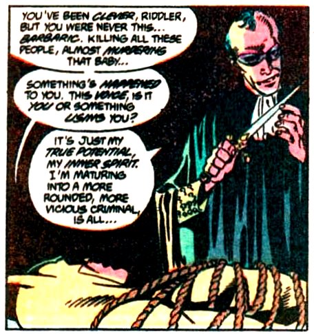The Riddler prepares his knife.