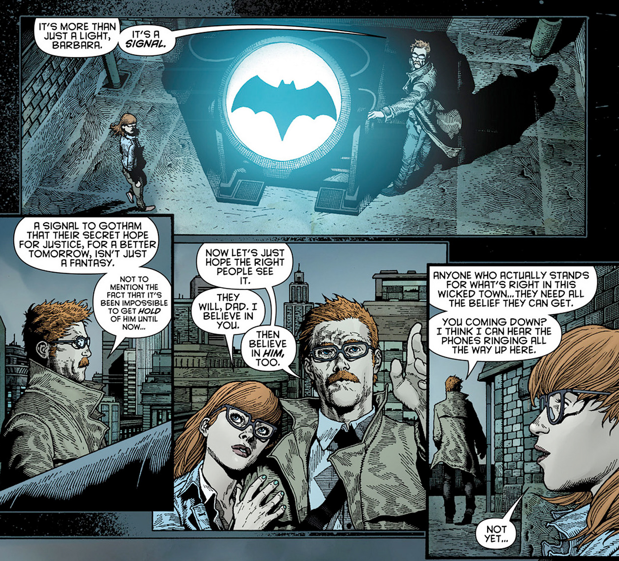Gordon lights the Bat-Signal for the first time