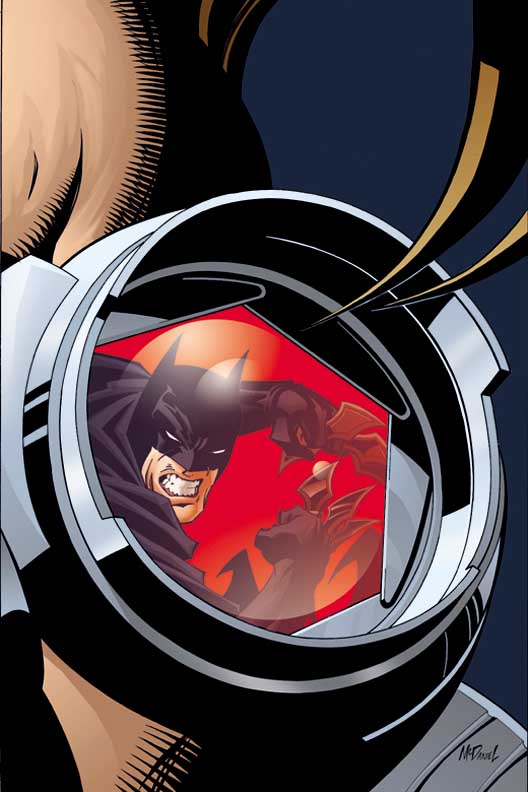 Zeiss finds someone who can repair his lenses, while the G.C.P.D. face off against the FBI over the alien which has been granted sanctuary by a Gotham cathedral. Batman leaves Batgirl to watch over the cathedral situation while he goes on patrol. Zeiss, meanwhile, receives his mended lenses from a courier called Pete, whom he kills, believing him to be a man who trades in information. Later in the night, Commissioner Akins calls Batman in because his men have been ordered to stand down at the cathedral: the FBI and/or DEO must be planning to act soon. At the cathedral, Batgirl stalls the DEO troops who are about to invade the premise. Batman tells the clergymen that they must tell him where their 'patient' is if they want to save him. Father Nick warns him that not only is the alien dying, but he doesn't seem to think in the same way that humans do. When Batman's hand meets that of the alien, their minds are link. He witnesses the destruction of the alien's homeworld at the hands of Imperiex and learns how to cure the two comatose men who attacked it earlier. As this is communicated, the alien drops dead.