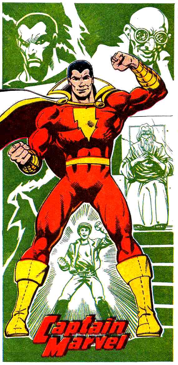 Later, after discovering the machinations of his evil uncle, Billy fled and followed a strange figure through a locked subway station. There, he was chosen by the wizard Shazam to be a champion of good. Shazam gifted Billy with the power of six legendary figures, and when he spoke the Wizard's name, he became Captain Marvel, an adult superhero empowered by these figures.