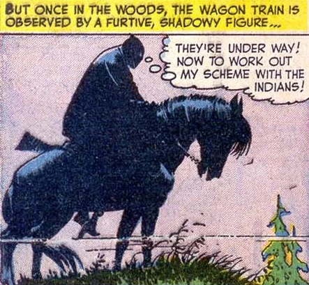 Secret tunnels in the prison allowed him to come and go unseen as the Black Cougar. He caught the attention of Tomahawk and Dan Hunter when he tried to supply guns to an Indian chief. The pair caught him and placed him in a cell in Merriville prison. Black Cougar was able to escape his prison cell after he donned his Bramm identity by applying hair dye and a fake mustache. He told the guard that Black Cougar had escaped and imprisoned him.[1] Black Cougar returned to his criminal ways by robbing wagon trains though an encounter with Tomahawk revealed his dual identity. When Tomahawk was later captured by the Black Cougar, he was unprepared to be rescued by Elias Bramm. Later, as Tomahawk attempted to capture the Black Cougar, he stumbled upon the real Bramm. Bramm explained that Black Cougar had attacked and left him for dead and had been impersonating him at the prison. Were it not for the aid of a friendly Indian tribe, Bramm would have died. Black Cougar interrupted Bramm's explanation and held the men at gunpoint. A quick-thinking Tomahawk kicked loose some boulders which rolled down towards the villain. Black Cougar snatched one and attempted to crush his foes but the boulder's weight unbalanced him and he tumbled off a cliff to his death.[2]
