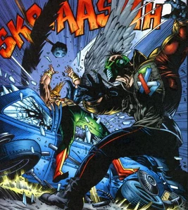 Bloque tried to stop Carter Hall and Kendra Saunders while they were in St. Roch, trying to discover where archaeologist Daniel Evans was. Roderic, who was after Evans' own research, sent him to take care of both heroes before they could interfere in his plans. But he did not consider the power of Hawkman, who easily defeated the mercenary.[1]