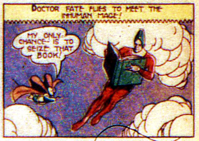 In 1940, an evil wizard killed the guardian and stole the book. Doctor Fate fought the wizard, and after an air battle the villain fell to his death. The animals and trees in the area attacked Doctor Fate, seeking revenge against the man who killed the current owner of the Book. Doctor Fate then burned the book, which broke the spell and returned the trees and animals to normal, although thousands of fish died where the book's ashes were scattered across the sea.