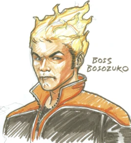 Boss Bosozuko was a member of the Big Science Action. He had flame powers and rode a nuclear-powered motorcycle. Boss Bosozuko was eventually succeeded by Boss Bishonen.