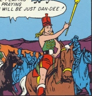 Brenda was kidnapped by Paula von Gunther along with many other women who were involved in allied planning and action and was recognized in her imprisonment by Diana Prince who rescued her and the other women Paula was attempting to brainwash at the site.[1] She was later part of the band at Etta Candy's planed marriage to Hylo Goulash and helped fight and subdue the Nazis when "Goulash"'s true colors were revealed.[2]