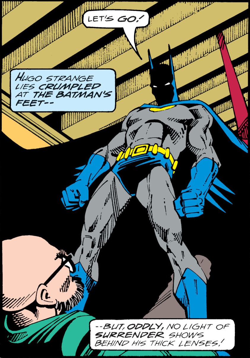 The Batman seldom enjoys himself! I'm certain he envies those who can lead peaceful lives! He's driven... he's burdened with a compulsion to battle crime! It isn't pretty-- it's simply what he does… what he needs to do! Don't pity him-- but don't condemn him either!