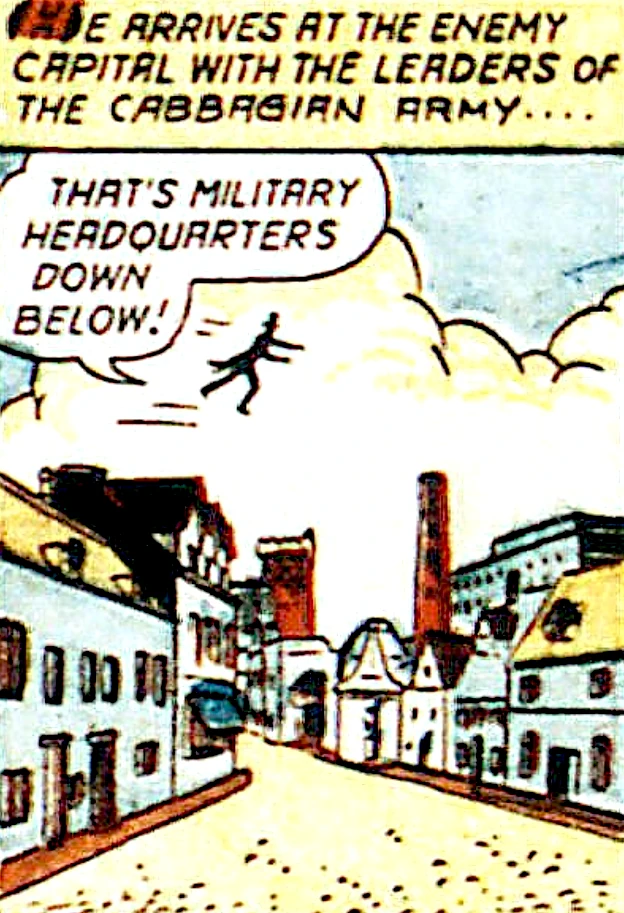 At the end of the 1930s, Cabbagia invaded a neighboring nation. The traveling American stage magician John Zatara was visiting Europe at this time, and he responded by utterly defeating the armed forces of both warring nations, then compelling their national leaders to negotiate an immediate peace treaty.