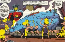 After his death, Caligula became one of the damned; he was fed by demons with the blood of sinners for circa 2,000 years. He was served as a feast when Etrigan once tried to rule Hell.[4]