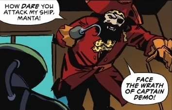 Captain Demo is a seafaring criminal who affects the appearance and mannerisms of a 17th Century pirate.