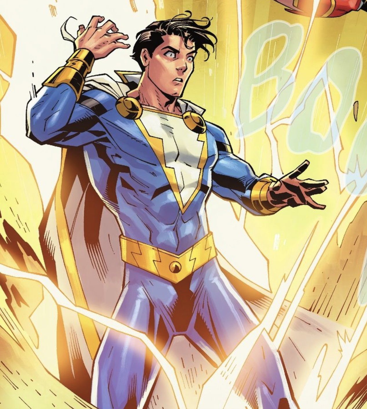 Captain Marvel, Jr. is the sidekick to Captain Marvel, receiving incredible powers from the wizard Shazam whenever he speaks his predecessor's name. His alter-ego is a crippled impoverished orphan named Freddy Freeman, who cannot walk. During the The Trials of Shazam! storyline, he graduated to becoming the new Captain Marvel. In The New 52, Freddy Freeman is now known as Shazam, Jr.. He has been a member of the Marvel Family, Outsiders, Teen Titans and Young Justice.