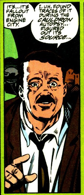 During the Clone Plague Packard discovered that the deadly catalyst that was killing all the clones come from the rubbles of Engine City, Luthor JR. who was dying of the same illness, set Packard free to develop a cure, but he was caught by the Cadmus security, Packard reveled the truth and began working on a serum, which he administered to Superboy first.[2] Despite having helped Luthor, Packard kept working for the Project Cadmus.[1]