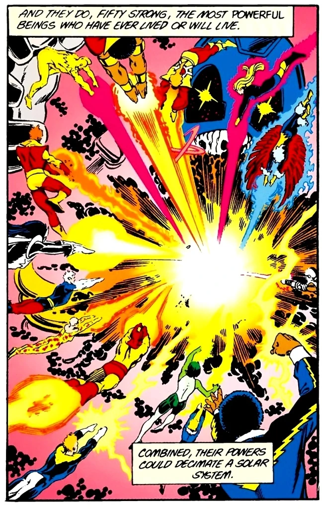 Anti-Monitor easily surviving and absorbing the energies which combined could decimate a solar system.