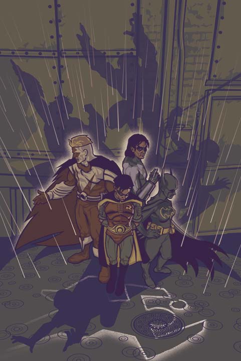 Despite her injury, Catwoman desperately races across the Gotham rooftops to escape the various costumed vigilantes who are pursuing her in connection with the shooting of Commissioner Gordon. She is gradually worn down as members of the Batman Family hand her from one to the other, and finally captured, which of course is traumatic for her since her recent imprisonment. She tells them that she did indeed see Gordon's attacker - although she wouldn't be able to identify him, it was definitely a cop. She is even able to give them the location of the gun used to shoot the Commissioner, which she saw the cop in question hide, later hiding it again herself in a less accessible location. Finding it following her instructions, the heroes let Catwoman go, vowing to get the gun traced. Meanwhile, the doctors perform surgery on Gordon.