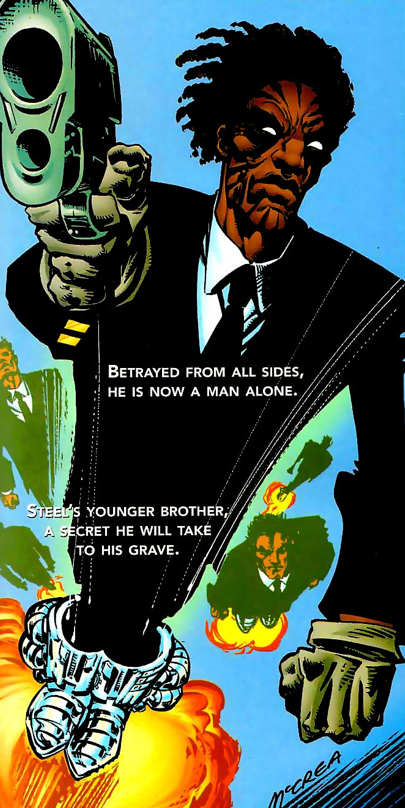 Born Clay Irons but later going by Reggie Glover, Crash is the enemy of Steel. He is the younger brother of John Henry Irons and the father of Natasha Irons.