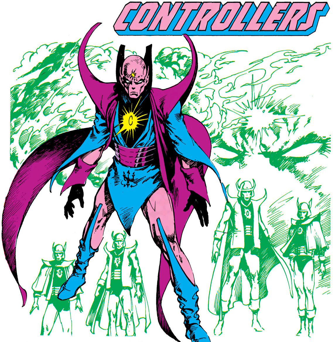 In their initial appearance, the Controllers came from "another space-time continuum". Their universe had almost been destroyed by war, and they determined to prevent the Earth-One universe going the same way. They used their mind-control abilities to prevent intergalactic war, but also had powerful weapons, including the Sun-Eater.[1]