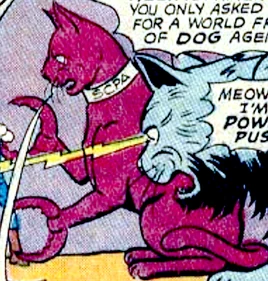 When Krypto the Superdog decides to take Chief Top Dog and his Canine Caper Gang to a "new world" to get away from the Space Canine Patrol Agents, he takes them to a place where the Space Cat Patrol Agents reside. Crab-Tabby, along with Atomic Tom and Power Puss, then start attacking them.[1]