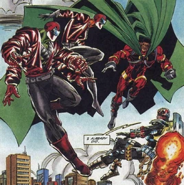 One person not pleased with Icon's survival was Oblivion, a notorious serial killer whom Icon had imprisoned nearly 200 years ago.[13][14] After escaping prison, Oblivion traveled to Earth to slaughter its population as part of his vendetta against Icon.[15] As Oblivion hoped, Icon immediately returned to Earth while the D'amsi dispatched their nearest available patrol to assist.[14] By the time the D'amsi patrol arrived on Earth, Oblivion had been defeated by Icon and his human sidekick, Rocket.[4] Oblivion was taken back into custody by the D'amsi, who erased all electronic recordings of their visit as they left Earth.