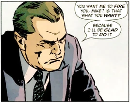 He pressured Commissioner Akins and Captain Sawyer to arrest the Killer Clowns, the Joker's former henchmen, and he threatened to fire Akins if he didn't make a public spectacle of the arrest.[1] He used his position to get his old friend David Cornwell appointed lieutenant in the Major Crimes Unit rather than the more deserving Jackson Davies.[2]