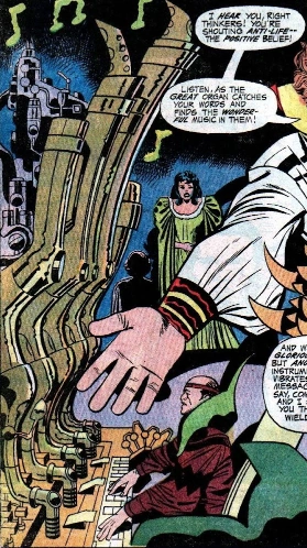 The organ generates sound waves to vibrate and stimulate a human's most raw instincts such as anger, turning them into nothing more than zombies under Godfrey's control [1].