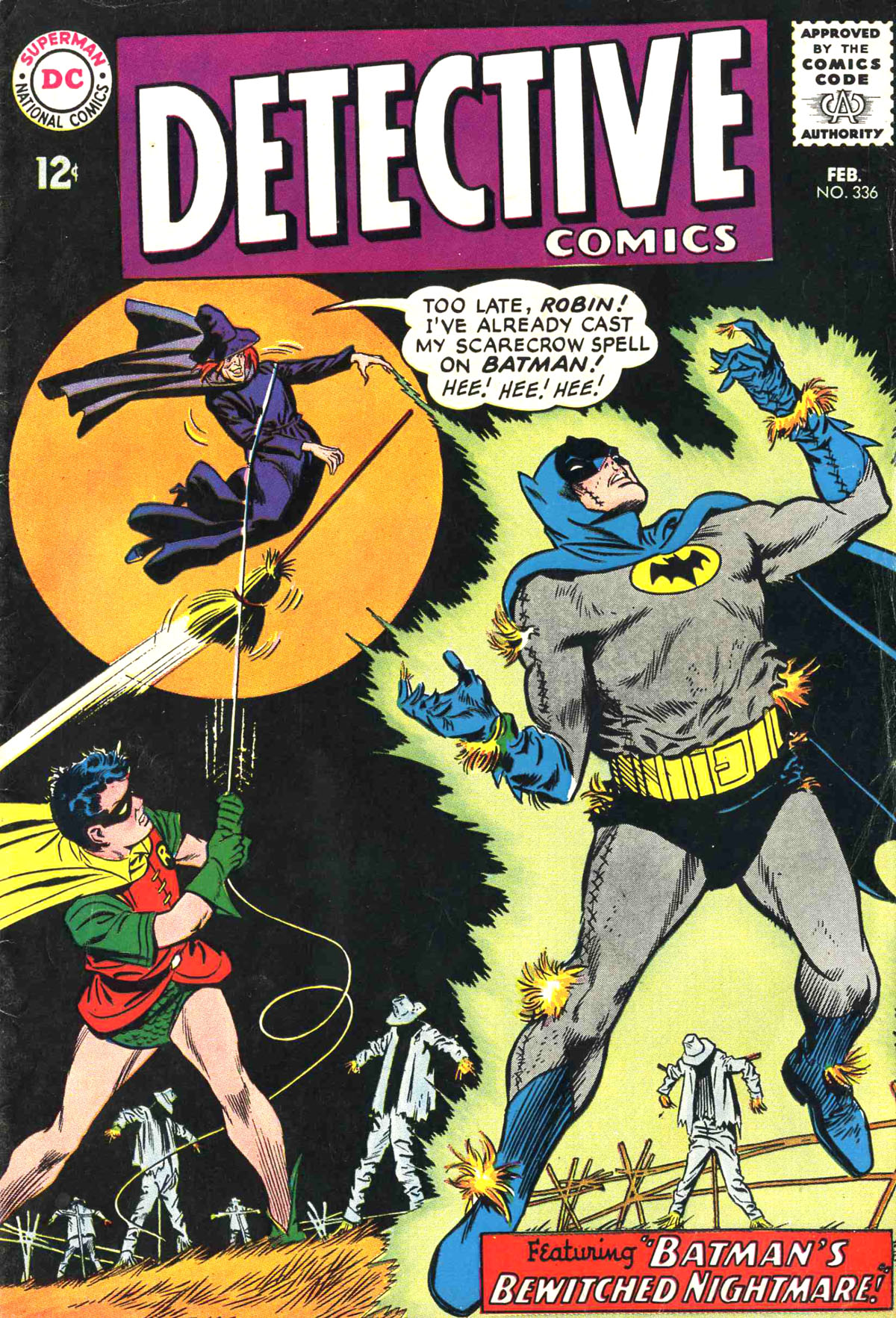 An apparent witch has appeared in Gotham City and is attempting to impede Batman's crusade against crime by helping out crooks that Batman and Robin are trying to stop. With each encounter with the witch, she robs them of their 5 senses if only temporarily. Chasing a gang to a local farm, Batman is turned into a scarecrow, until Robin is able to knock the witch off her broomstick and take possession of it himself, thereby canceling out the spell on Batman.