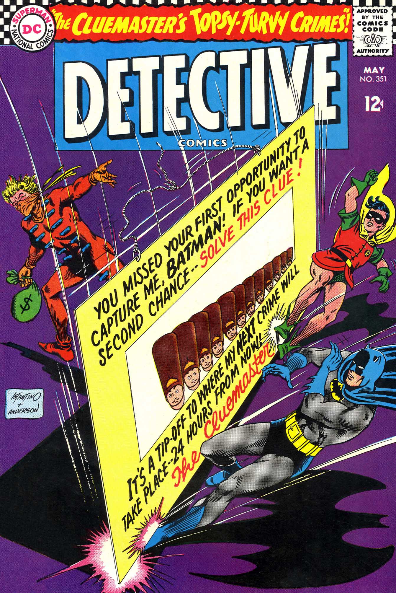 Detective Comics #351 is an issue of the series Detective Comics (Volume 1) with a cover date of May, 1966. It was published on March 29, 1966.