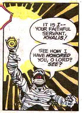 The Egyptian deity Anubis rewarded his most devoted follower, the mad priest Khalis, with the Amulet of Anubis, holding part of the god's own power. In the following years, Khalis used the Amulet to take mental control of a legion of Nubian slaves and made them build "the mightiest of pyramids" to honor Anubis. When Nabu the Wise, a Lord of Order in human form who served various Egyptian Pharaohs, discovered the actions of Khalis, he freed the slaves from the priest's spell and let them have their revenge on Khalis. As Khalis was buried, Nabu took the Amulet as his own.[8]