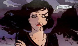 As a Nightmare, Echo visited the second Corinthian in dreams, and caused her nightmares. Not as revenge, but as a way to make her understand the human pain that he caused to her. During this time the old archetypes nightmares Glob and Brute escaped from the prison made for them by the first Dream and convinced her to help them make a new kingdom in the Dreaming, just for Nightmares. Echo wasn't entirely convinced, but she followed the pair nevertheless to the now abandoned House of Mystery where she was possessed by the house. Glob and Brute didn't noticed the change. They assumed that she, being made of human stuff, besides dream stuff, could connect better with the house. In her new state, Echo started calling herself Dread of the Endless, and started a civil war in the dreaming against Dream. She killed Abel, tortured Eve, Brute, and Glob, and freed the Night Terrors from the Cave of Nightmares to roam the Dreaming.[3] Later, Cain discovered that Echo wasn't in control of her body, and that the House of Mystery was doing everything as revenge because he had left the Dreaming and neglected his duties as guardian of mysteries. Finally, Cain told her one last mystery, that made the house happy, and returned Echo's spirit to her body. Dream, noticing that she committed great crimes against the Dreaming, but against her will, promised that a place will be found for her in the Dreaming. Her present state is unknown.[4]