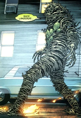 Caught in a "special munitions test" at Alamagorda, New Mexico, which apparently turned him into a plant-creature, Dane was a hero during the 1940s, when he was approached by the US Armed Forces to help them fight the Nazis. His actions during the war are unknown, but he and some other heroes were tasked with observing the Hiroshima bombing, whereupon they were abducted and conscripted into the Number of the Beast Program.
