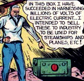 He was a scientist who invented a machine which fired bolts of electricity. He used it to extort and kill rich men. After tangling with Madam Fatal, the Wizard and his henchmen drowned in a flooded cave.