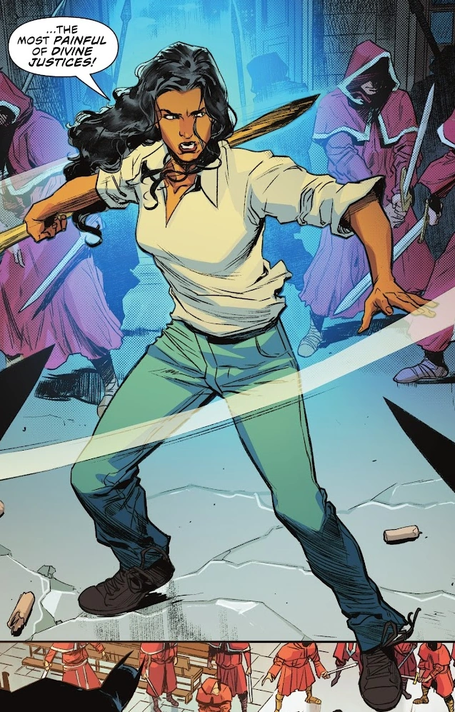 Elnara Roshtu is a knight formerly of King Arthur's Knights of the Round Table who later becomes an ally of Justice League Dark.