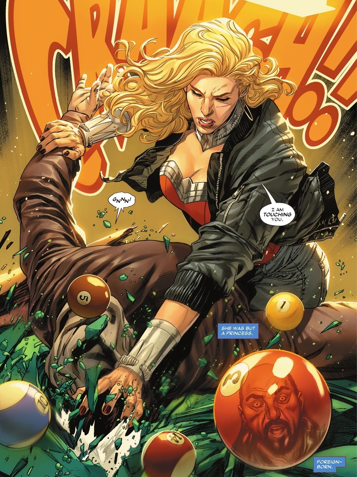 - Superhuman Strength: Emelie possesses vast physical strength and could shove a man through a pool table.[2]
