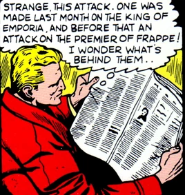 In 1940, an attempt was made to assassinate the King of Emporia, in the same year as attempts were made against U.S. President Roosevelt, and the Premier of Frappe. The Order of Assassins was behind all this, under the leadership of Hassan Ibn Sadah, a namesake descendant of the founder of the Sect.